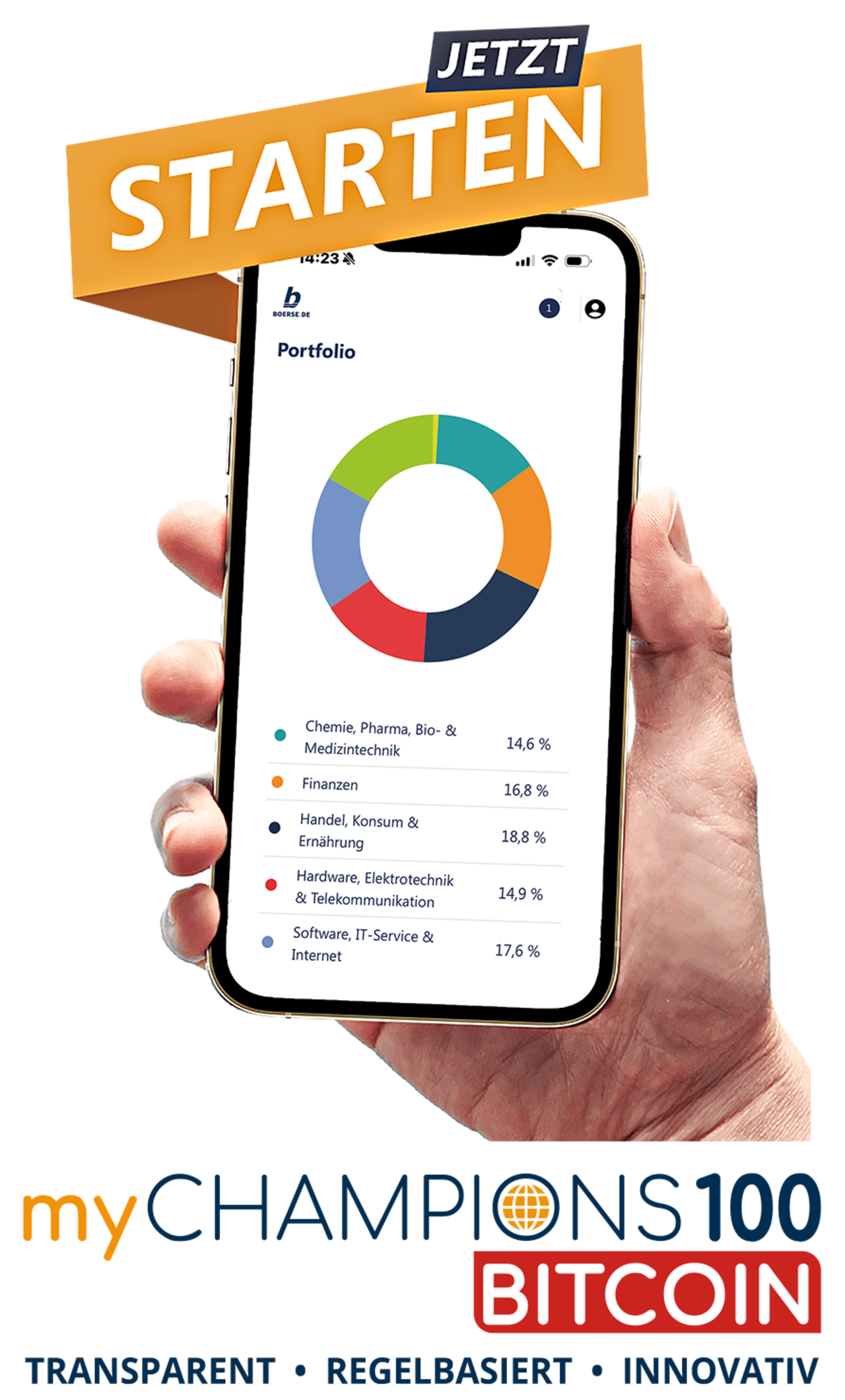 myChampions100BITCOIN investiert in Champions aus dem boerse.de-Aktienbrief, die laut Performance-Analyse langfristig erfolgreichsten und sichersten Aktien der Welt sind, sowie in den Bitcoin.