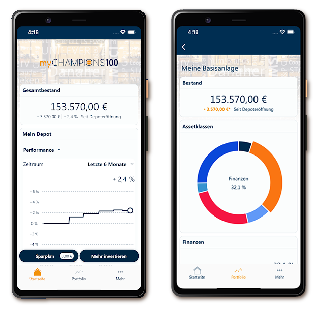 - Per myChampions100-App und über den Online-Zugang sind Sie immer auf dem Laufenden und behalten sämtliche Transaktionen im Blick.