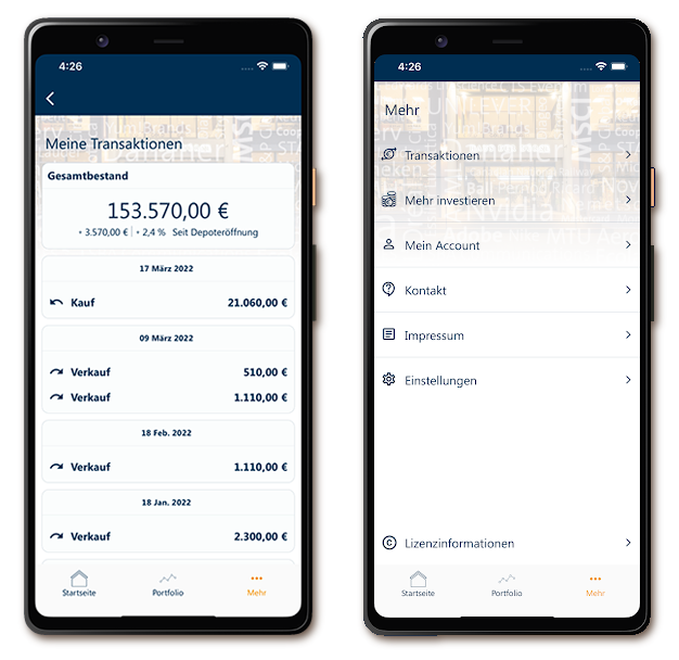 Alle Transaktionen und die Entwicklung des Depots sind über den Online-Zugang oder über die myChampions100-App jederzeit einsehbar. Außerdem erhalten Sie ein vierteljährliches Reporting.